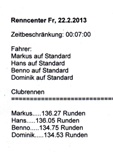| Das 2. Rennen vom Freitag 22. Februar 2013 um 20 Uhr ist beendet! |