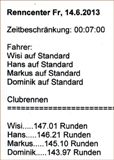 | Das 5. Rennen vom Freitag 14. Juni 2013 um 20 Uhr ist beendet! |